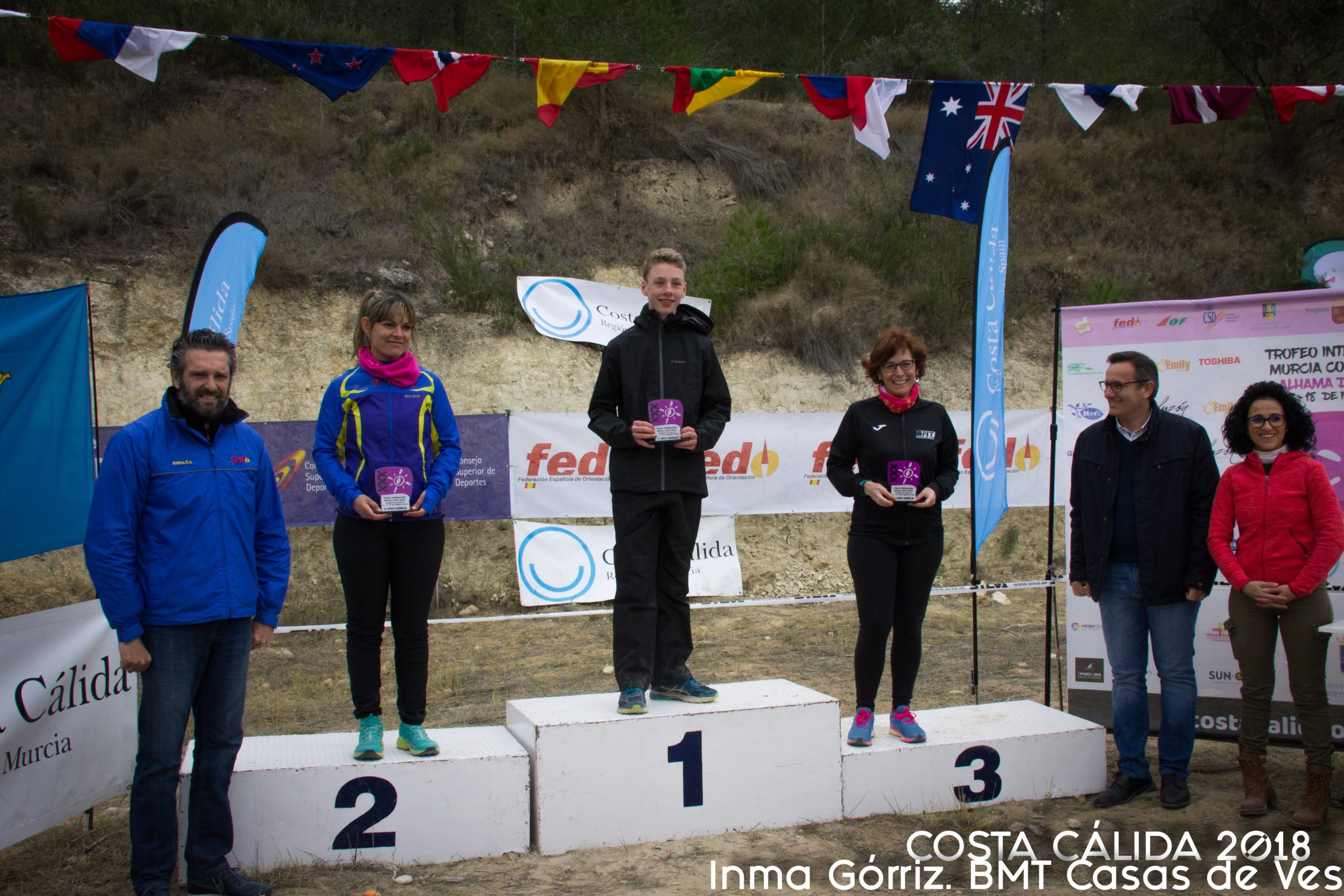 Personalmente iba muy contenta porque molaba ver a todo el mundo igual de perdido que nosotras, y sobre todo porque si de por sí los orientadores solemos ser muy solidarios en carreras normales, esa faceta se multiplicó por mil con esta meteorología. Da igual a quien preguntaras, todo el mundo ayudaba con las ubicaciones. Cuando tenías problemas para subir algún “pedrusco” (como decimos en mi tierra) que los había a centenares, no faltaban manos que te ayudaran a hacerlo. Esa solidaridad entre gente casi desconocida era enternecedora. Niños que cuando los veías parados, mirando a todas partes, con lágrimas a punto de salir y les preguntabas que si sabían dónde estaban y te decían que no y que, casualmente compartías baliza, y les decías: “Vente con nosotras” y ver como por instantes su cara pasa de la preocupación al alivio acompañado de una gran sonrisa; que cuando alguien te veía agachada tocándote la rodilla, y observabas como aminoraba la velocidad de carrera para preguntarte: ¿estás bien?; que de repente cruzas un riachuelo rebozado con unas zarzas, y condimentado con unas ramas secas arañándote todo el cuerpo, mires a tu mano y veas que te falta un elemento básico, miras para atrás y te dices: “lo siento amiga brújula pero no vuelvo a buscarte” y oír a mi compañera Olga diciéndome: “Tranquila, aquí tengo la mía”……Ufffff…. No hay palabras suficientes para describir tantas sensaciones tan emocionantes concentradas en dos horas y media.